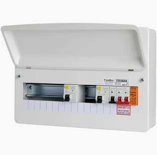 The FuseBox F3008M 8-Way Consumer Unit is a robust, AMD3-compliant metal fuse box finished in smooth white. It features conduit knockouts on all sides and large rear knockouts for flexible cable entry. A removable key-slot DIN rail, along with top-mounted earth and neutral terminal bars, ensures a quick and tidy installation. Every unit comes supplied with blanks and a circuit identification label pack.