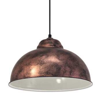 The Truro 2 pendant light, crafted with care, features a round lampshade made from durable steel, adorned with an antique copper finish. The warm cream-colored inner surface adds a touch of elegance. It seamlessly blends into industrial-style interiors, making it the perfect choice for your living room or above your dining table. Its understated design sets the mood just right. Please note that the E27 lightbulb is not included.